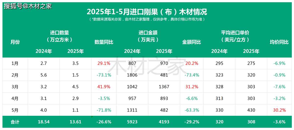 出口方面,木材出口量虽连结根基不变,但因为受限于既定的出口配额及《濒危野活泼植国际商业公约》(CITES) 的严酷管制办法,增加空间被“牢牢锁死”。海关数据显示,2025年5月,中国进口量暴跌至1。1万立方米,同比锐减71。8%,成为本年前5个月中进口量最低的月份;进口额同步暴跌63。3%,仅为482万美元。